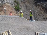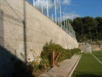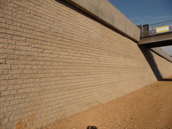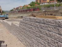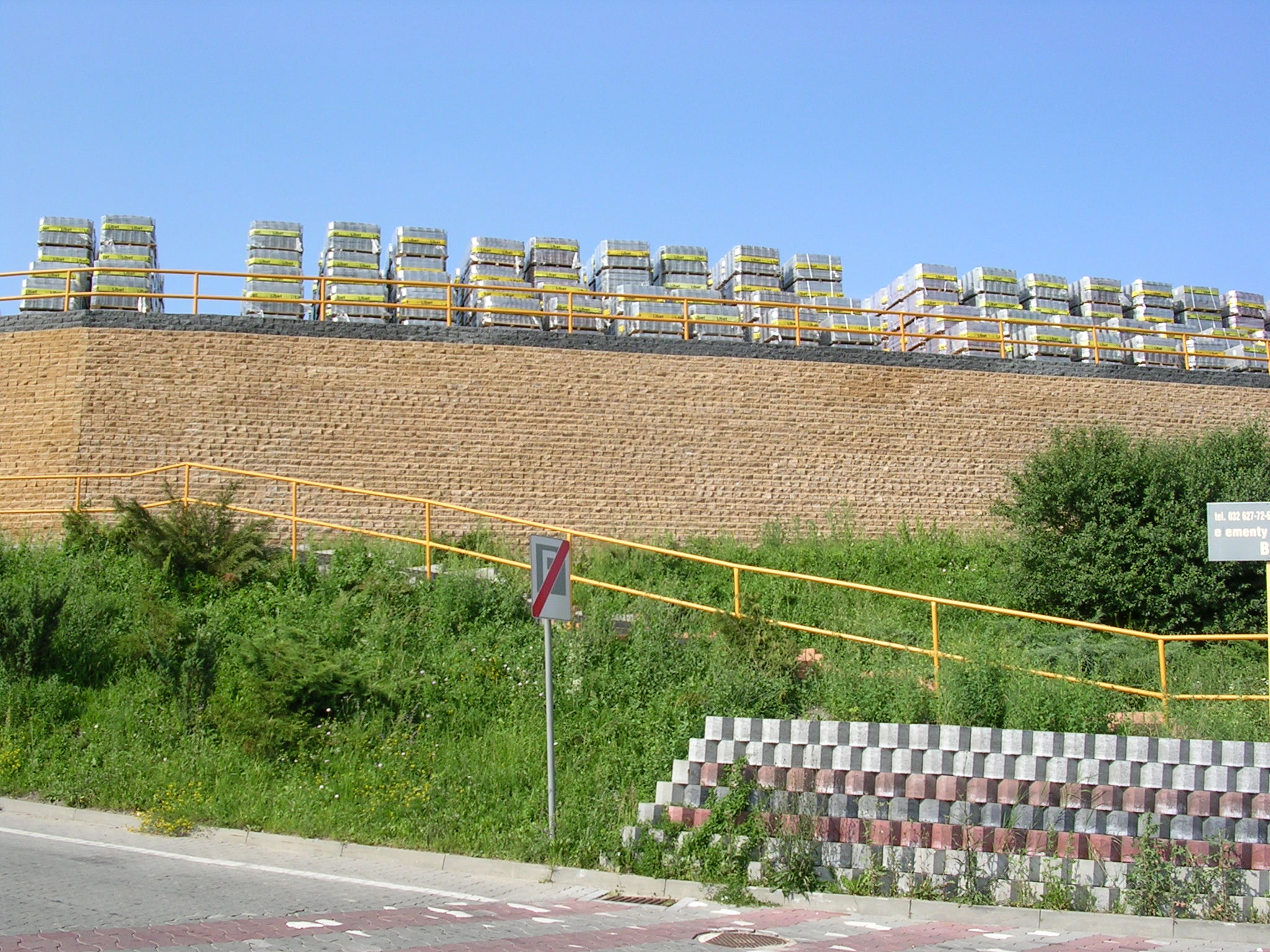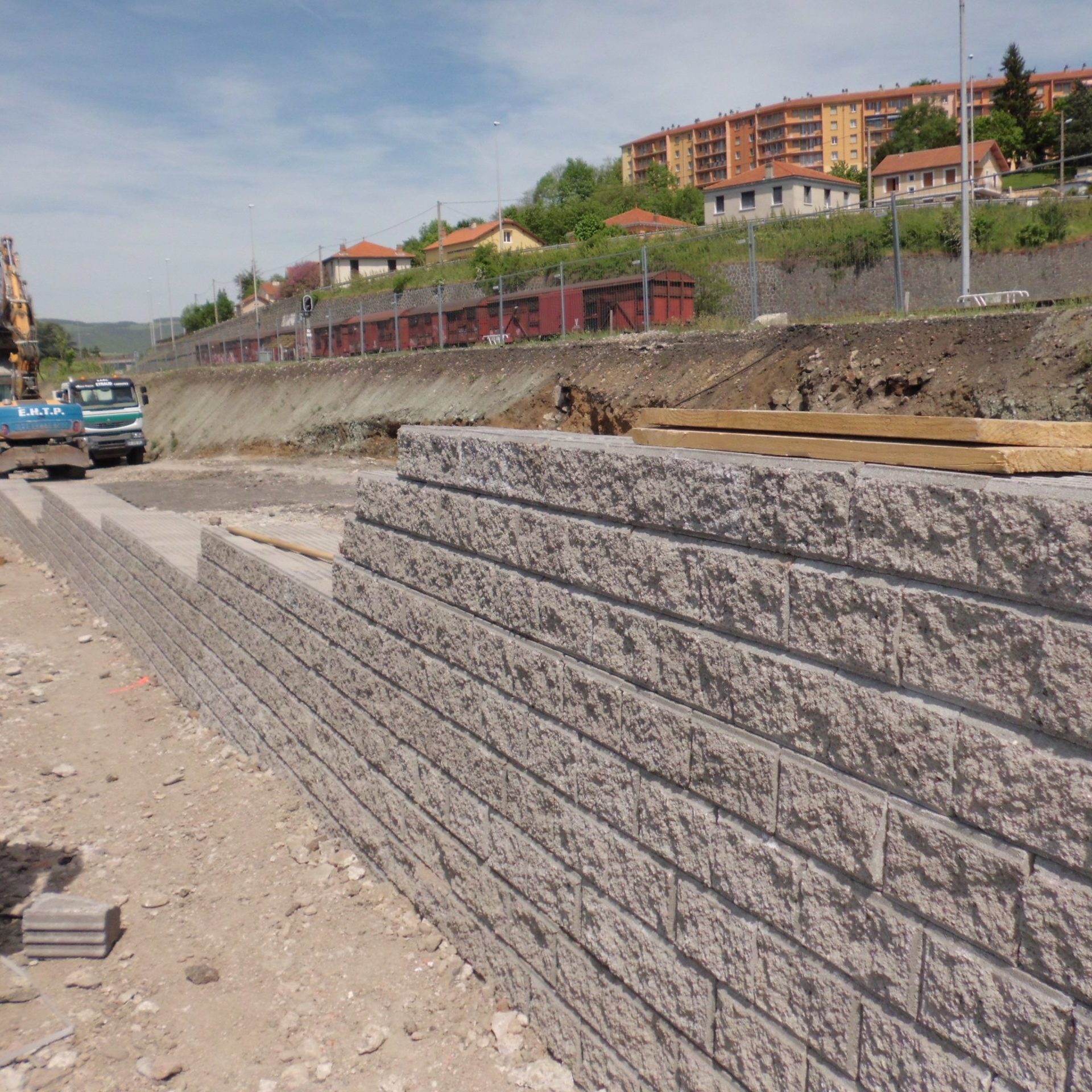 Bloc plein aspect pierre éclatée, sécable sur chantier, conçu pour le montage en éléments de 1 m, 0.75 m, 0.50 m et 0.25 m. Adapté pour des murs de soutènement de très grande hauteur, ainsi que pour de petites hauteurs, murs de parement, merlons de protection phonique, clôtures verticales. Système breveté, marque déposée.
